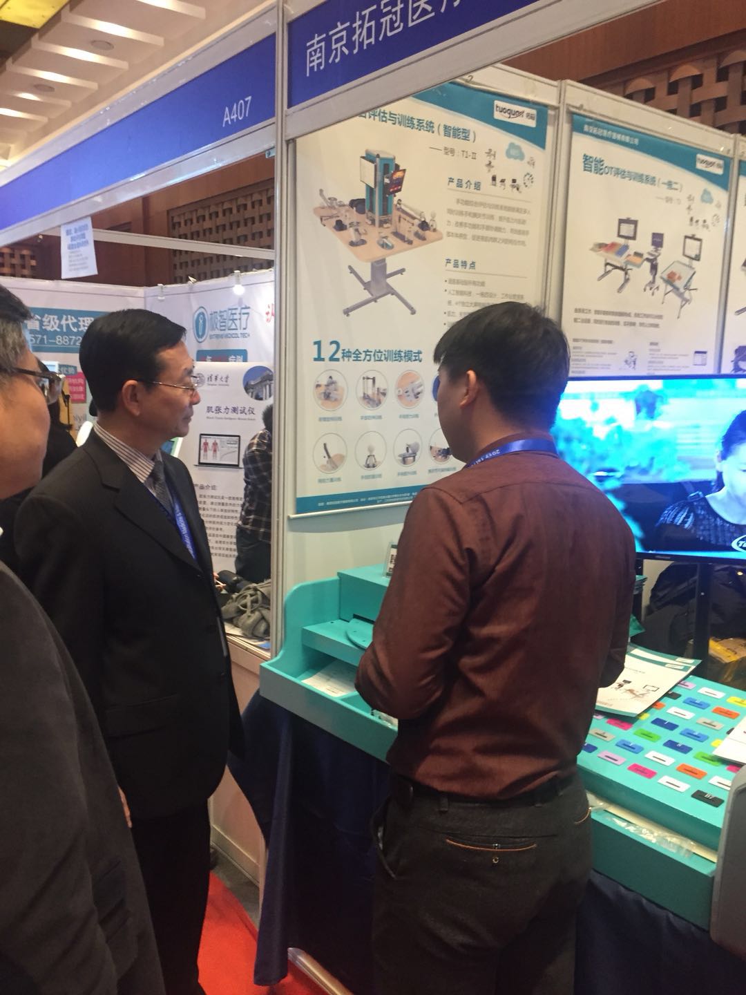 中國康復醫學會會長方國恩及相關領導蒞臨拓冠展位,參觀、指導拓冠自主研發新產品,傳授康復經驗。